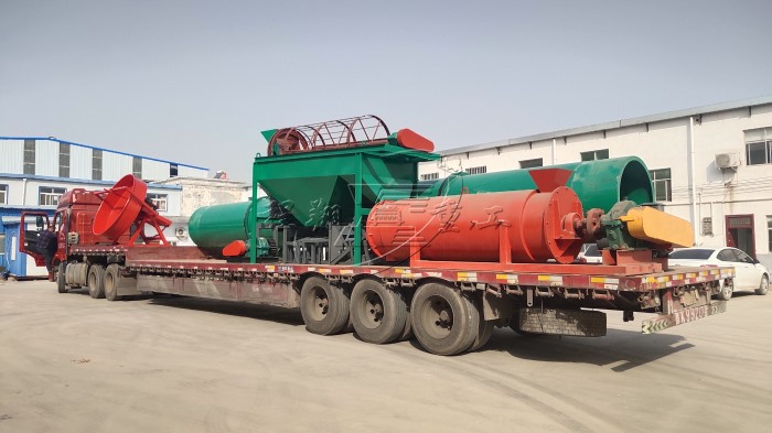 本次發(fā)貨的豬糞有機肥生產(chǎn)線主要設(shè)備有:鏟車喂料、臥式攪拌機、有機肥濕法造粒機、滾筒篩分機以及烘干設(shè)備。BB肥攪拌機作為拋圓設(shè)備使用