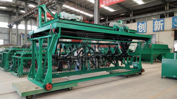 查看 > 20 2020/11由于該豬糞秸稈有機(jī)肥料生產(chǎn)線產(chǎn)量較大,因此分為多車裝置運(yùn)輸。主要的豬糞加工設(shè)備有:大型秸稈粉碎機(jī)、履帶式翻堆機(jī)、臥式攪拌機(jī)、新型三合一造粒機(jī)、不同型號的滾筒篩分機(jī)以及多個型號的烘干冷卻設(shè)備。滾筒烘干設(shè)備風(fēng)頭以及風(fēng)機(jī)安置熱風(fēng)爐以及冷卻設(shè)備多個烘干冷卻設(shè)備履帶式翻堆機(jī)以及大型秸稈粉碎機(jī)二次烘干設(shè)備滾筒篩分機(jī)以及鏟車喂料倉本次豬糞秸稈有機(jī)肥料生產(chǎn)線工藝設(shè)計流程為:利用大型秸稈粉碎機(jī)將稻草秸稈等粉碎均勻,