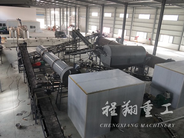 查看 > 20 2020/11由于該豬糞秸稈有機肥料生產(chǎn)線產(chǎn)量較大,因此分為多車裝置運輸。主要的豬糞加工設(shè)備有:大型秸稈粉碎機、履帶式翻堆機、臥式攪拌機、新型三合一造粒機、不同型號的滾筒篩分機以及多個型號的烘干冷卻設(shè)備。滾筒烘干設(shè)備風(fēng)頭以及風(fēng)機安置熱風(fēng)爐以及冷卻設(shè)備多個烘干冷卻設(shè)備履帶式翻堆機以及大型秸稈粉碎機二次烘干設(shè)備滾筒篩分機以及鏟車喂料倉本次豬糞秸稈有機肥料生產(chǎn)線工藝設(shè)計流程為:利用大型秸稈粉碎機將稻草秸稈等粉碎均勻,