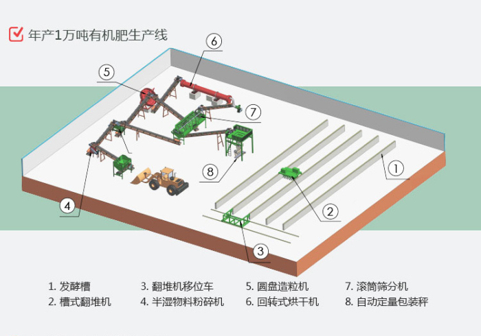 年產(chǎn)1萬(wàn)噸的糞便有機(jī)肥生產(chǎn)線工藝流程
