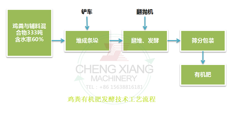 雞糞有機(jī)肥發(fā)酵技術(shù)工藝流程圖