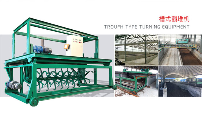 使用槽式翻堆機對條堆進行翻拋。溫度升到55℃以上,每隔1~2天翻堆一次,55℃發(fā)酵10~15天后,將條堆收起即可。(翻堆的目的是促進水分蒸發(fā)、促進氧氣進入堆體內(nèi)部、促進菌種進入堆體內(nèi)部并迅速繁殖和發(fā)酵)下圖為帶提升式的槽式翻拋機,可以調(diào)動翻堆高度,同時縮短翻堆回程速度。
