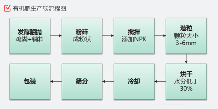 查看 > 13 2020/10本次發(fā)貨的設備是程翔重工是為江西某客戶定制的,簡單的年產(chǎn)1萬噸雞糞有機肥生產(chǎn)線,主要設備有:鏈式粉碎機、滾筒篩分機、濕法攪齒造粒機、鏟車喂料倉以及自動包裝秤。改雞糞生產(chǎn)線的工作流程為:發(fā)酵——粉碎——攪拌——造粒——篩分——包裝運輸1.發(fā)酵是第一步,畜禽糞便含有大量病蟲卵,需要進