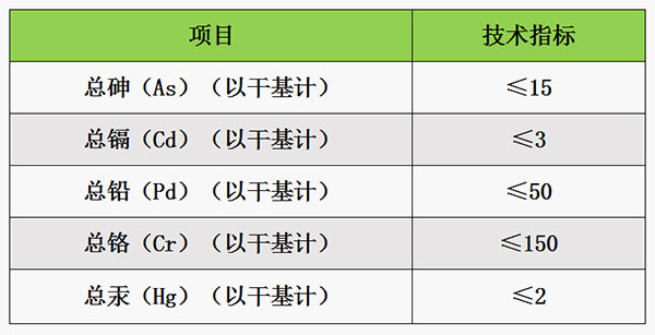 表2 有機肥料中重金屬的限量指標