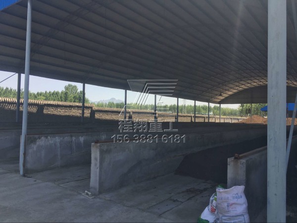 ④移動翻拋發(fā)酵加工法。該工藝是在溫室式發(fā)酵車間內,沿軌道連續(xù)翻耕動拌好菌劑的畜禽糞便,使其發(fā)酵、脫臭,牲畜禽糞便從發(fā)酵車間一端進入,出來時便為發(fā)酵好的有機肥,并直接進入干燥設備脫水,成為商品有機肥。該生產(chǎn)工藝充分利用光能、發(fā)酵熱,設備簡單,運轉成本低。其主要設備有翻拋機、溫室、干燥筒、翻斗車等。