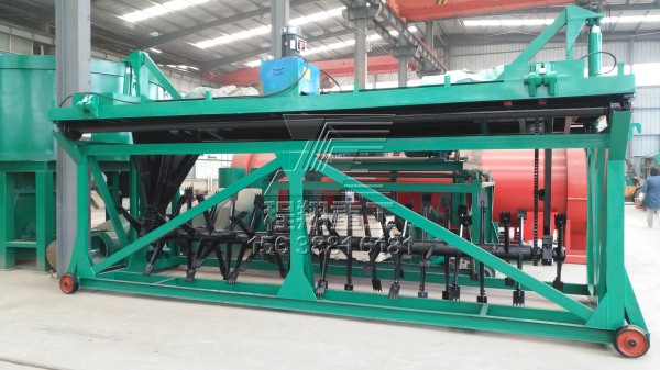 槽式翻堆機(jī)工作幅寬以3~12米居多。6米以下寬度的槽式軌道翻堆機(jī),如果是整體直線翻拋,強(qiáng)烈建議安裝翻拋滾筒液壓升降設(shè)備,這樣可以避免因?yàn)槲锪蠞穸却髸r(shí)無(wú)法翻拋造成的設(shè)備脫軌,從源頭上消除因?yàn)楸苊庖驗(yàn)槲锪陷^濕而造成的設(shè)備故障,杜絕因?yàn)樵O(shè)備脫軌造成機(jī)械損壞甚至是人員傷殘。一般來(lái)說(shuō),4米以上的翻拋設(shè)備,除了鏈板式翻拋機(jī)外,不再采取整體直線模式翻堆,一般是前進(jìn)1~2米,橫向翻拋,然后再前進(jìn)1~2米,再橫向翻拋,如此反復(fù),這樣就大大減少了整體前進(jìn)的阻力和發(fā)酵槽的承重力,就不再使用液壓升降設(shè)備了,但此時(shí)相對(duì)較費(fèi)時(shí)間,一般適用于處理量較小的場(chǎng)地使用。
