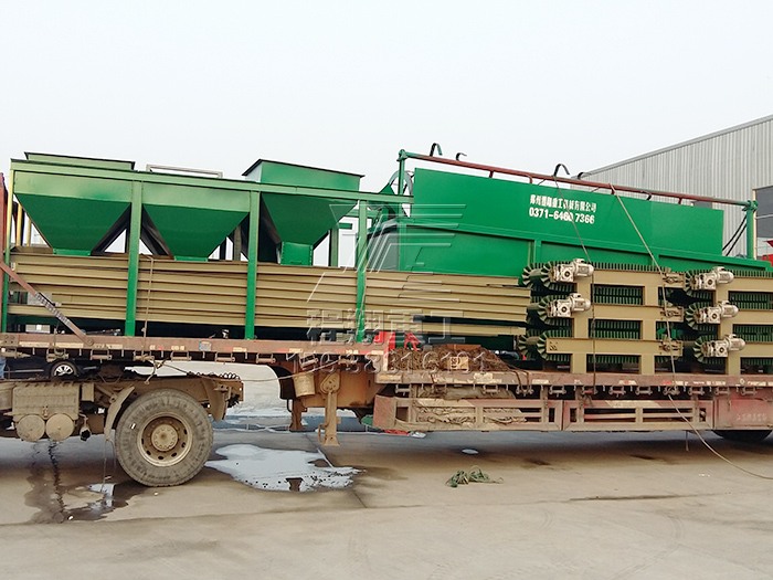 查看 > 13 2020/10本次發(fā)貨的設(shè)備是程翔重工是為江西某客戶定制的,簡單的年產(chǎn)1萬噸雞糞有機肥生產(chǎn)線,主要設(shè)備有:鏈?zhǔn)椒鬯闄C、滾筒篩分機、濕法攪齒造粒機、鏟車喂料倉以及自動包裝秤。改雞糞生產(chǎn)線的工作流程為:發(fā)酵——粉碎——攪拌——造粒——篩分——包裝運輸1.發(fā)酵是第一步,畜禽糞便含有大量病蟲卵,需要進