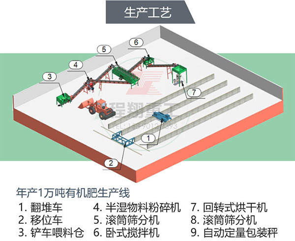 年產(chǎn)1萬(wàn)噸的粉狀有機(jī)肥生產(chǎn)線工藝流程